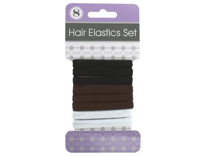 The Comfort Fit Clasp-Free Hair Elastics Set is perfect for workouts, casual styles, and elegant ponytails. With eight durable and stretchy bands available in versatile black, brown, and white, these hair elastics make a great accessory for any occasion. Designed for ultimate comfort and functionality, they come without clasps and maintain their elasticity for prolonged use. Packaged conveniently on a hanging panel, they're easy to store and access.