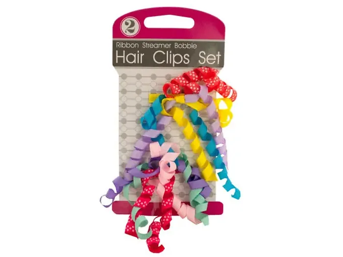 Colorful Ribbon Bobble Hair Clips - Set of 2