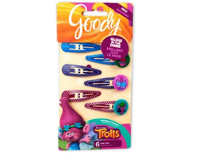 Brighten up your hair accessories with the Goody Trolls Glow in the Dark Snap Clips! Featuring Poppy and her friends from the animated movie, these clips not only keep your hair stylishly in place but also add a fun glow-in-the-dark element to your look.