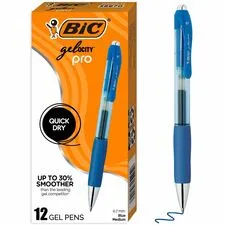 General InformationManufacturer:BIC Manufacturer Part Number:RGLCG11-AST Manufacturer Website Address:http://www.bicworld.com Brand Name:BIC Product Line:Gel-ocity Product Name:Gel-ocity Gel Pen Marketing Information:Enjoy a super-smooth writing experience with BIC Gelocity Quick Dry Gel Pens. Ideal as school supplies or office supplies for note-taking, journaling, and a variety of other everyday writing activities, these gel pens feature a super-smooth, smear free, quick drying ink that dries in as little as 5 seconds. The round barrel rests comfortably in your hand, while the 0.7mm point creates vivid marks. This retractable gel pen allows you to extend and retract the tip with a simple click. Available in a variety of vibrant ink colors, these gel pens are sure to leave a fun, striking impression. Packaged Quantity:12 Pack Product Type:Gel Pen