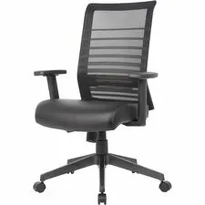 Boss Horizontal Mesh Back Task Chair - Vinyl Seat - Mesh Back - 5-star Base - Black - Armrest - 1 Each
