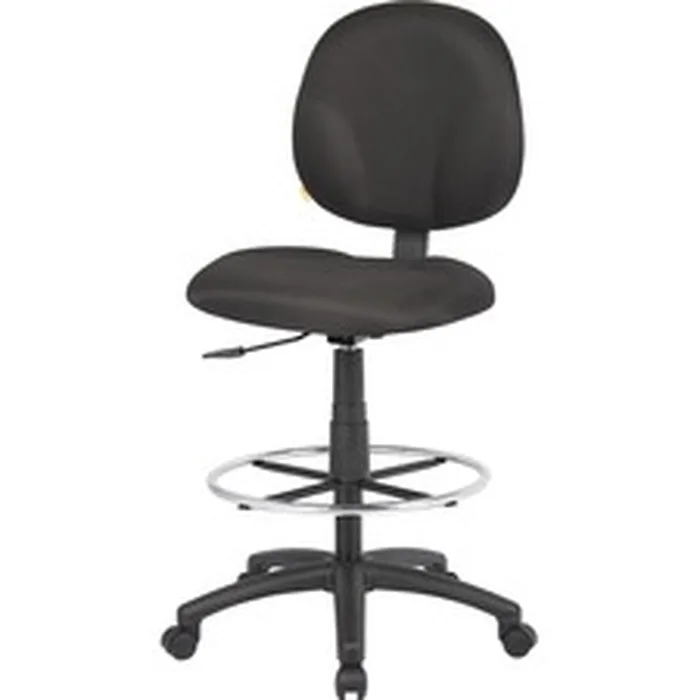 Boss Stand Up Fabric Drafting Stool with Foot Rest, Black - Black Crepe Fabric Seat - Black Crepe Fabric Back - 5-star Base - 1 Each