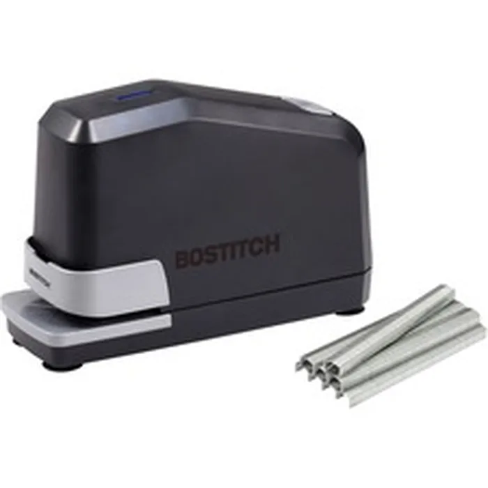 An electric stapling powerhouse, the Impulse 45 Electric Stapler features Impulse Drive technology for stapling in just a fraction of a second. No-Jam technology ensures smooth, repetitive stapling. Refill alert light indicates when staples need to be reloaded. FastLoad, push-button system allows easy staple reloading. Suction cup feet provide stability during use. Stapler uses Bostitch B8 PowerCrown staple sizes 1/4" (up to 20 sheets) and 3/8" (up to 45 sheets) and includes 5,000 B8 PowerCrown 1/4" staples.