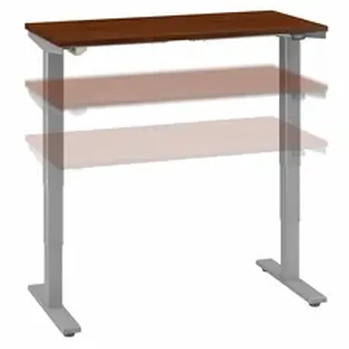 Bush Business Furniture's Move 40 Height Adjustable Standing Desk is a perfect way to build an ergonomic workspace without the high-end price tag. Give your body and mind a break from sedentary work and enjoy a healthier, more productive office with the push of a button. Three stage units lift the 48W x 24D desktop anywhere from 28 to 48 inches from the floor at a speed of 1.25 inches per second so you can change positions without missing a beat. The Adjustable Desk also features an Anti-Collision Sensor that prevents accidents by stopping movement up or down if an object is detected. Built to endure the rigors of a busy professional environment, the durable thermally fused laminate work surface is resistant to scratches and stains while a welded 16 gauge steel base allows the desktop to support up to 176 pounds. The 10-foot power cord plugs into a standard electrical outlet so the Sit-Stand Desk can be used in virtually any setting, from an open floor plan to a private office. Choose from Mocha Cherry, Hansen Cherry, Natural Maple, Storm Gray and White finishes with a silver base for a traditional or contemporary look to suit any workspace. This Ergonomic Office Desk is tested to meet ANSI/BIFMA standards for safety and performance and is backed by a 5 Year Manufacturer's Warranty. Bush Business Furniture also offers an Adjustable Standing Desk Stool and Anti-Fatigue Comfort Mat along with coordinating storage to complete your work area (additional items sold separately).