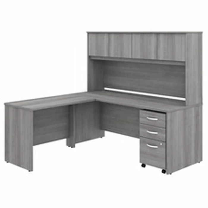 Bush Business Furniture Studio C 72w X 30d L Shaped Desk With Hutch, Mobile File Cabinet and 42w Return - 72" x 30" Desk, 42" Return, 72" Hutch - 3 x File, Box Drawer(s) - 4 Door(s) - Band Edge - Finish: Platinum Gray, Thermofused Laminate (TFL)