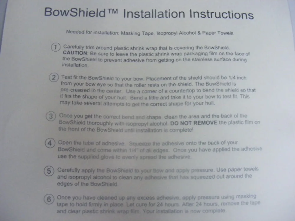 The BowShield has a pre-creased centerline for easy bending and fitting. It is easy to apply and comes complete with a 24 hour cure urethane adhesive for a permanent installation. It will not pop off like the peel and stick ones. Every Bowshield comes with our three year warranty.