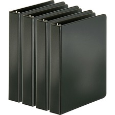 Basic round-ring binder features two triggers on the ring mechanism that provide easy access to your documents. Back-mounted metal rings allow pages to lie flat. 1" capacity holds up to 225 letter-size sheets. Clear pockets inside front and back covers offer extra document storage with a 30-sheet capacity for each pocket. Design also features a sturdy chipboard core and exposed rivets. Three-ring binder is made of polypropylene.