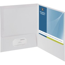 Durable, two-pocket folders feature laminated covers to resist soil and moisture. Two inside pockets hold 100 letter-size sheets of 20 lb. paper with a 50-sheet capacity for each pocket. The left pocket offers a die-cut business holder so you can customize your presentation by including your contact information. Portfolios are made of 210g card paper.