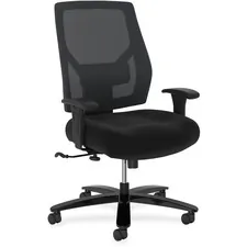 The HON seating collection is where quality meets value, offering maximum comfort, support and functionality. This Crio mid-back task chair delivers advanced features for customizable comfort and a simple, clean look to make it a great value. Breathable mesh back delivers cool comfort while giving the chair a cool look. Adjustable lumbar support enhances lower back comfort. Arms adjust in height and width to put the support right where you need it. Center-tilt recline control allows you to find the most comfortable posture. Task chair also offers 360-degree swivel for freedom of movement in any direction and pneumatic seat-height adjustment from 18" to 22". Reinforced five-star base equipped with dual-wheeled casters offers incredible durability. Mesh and seat fabric colors are black.