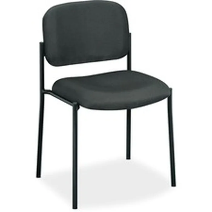 Guest chair without arms is a perfect addition to your conference room, lobby or anywhere extra seating is needed. Design offers a contemporary look with a black round tube frame and padded seat and back. Seat measures 19" wide x 17-1/2" deep x 19" high. Back size is 18-1/2" wide and 14-3/4" high from seat. Guest chair stacks four high. Chair weighs 12.5 lb.