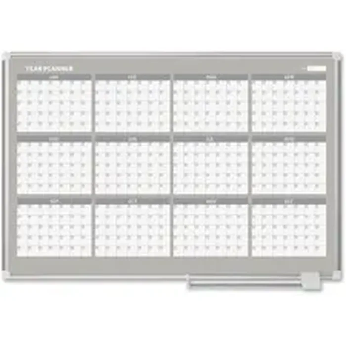 MasterVision 48" 12-month Calendar Planning Board - Julian Dates - Monthly, Weekly, Daily - 12 Month - Silver, White - Aluminum - 36" Height x 48" Width - Scratch Resistant, Ghost Resistant, Accessory Tray, Dry Erase Surface, Magnetic - 1 Each