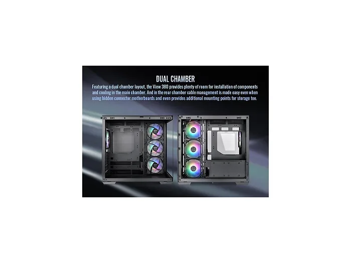Experience the ultimate in PC customization with the View 380 TG ARGB Mid Tower Chassis. This innovative dual-chamber ATX case seamlessly integrates with Hidden-Connector Motherboards from ASUS and MSI.