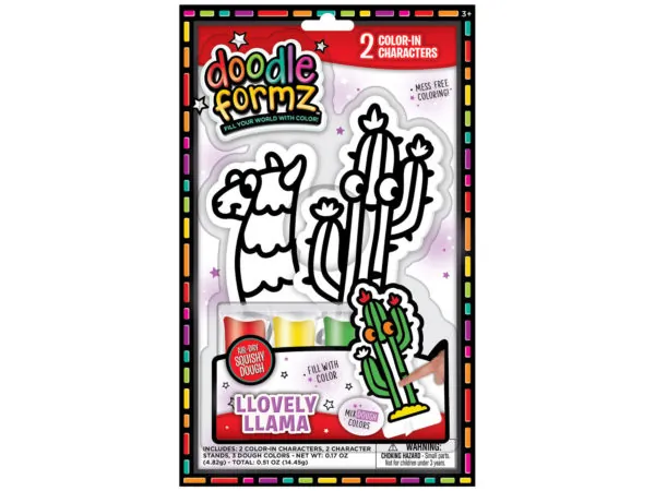 Included are three vibrant dough colors: green, pink, and orange, allowing kids to fill in the two pre-drawn sketches. Once completed, masterpieces can be displayed using the included stands. Packaged in a convenient hanging blister pack, this art kit is perfect for gifts or on-the-go entertainment!