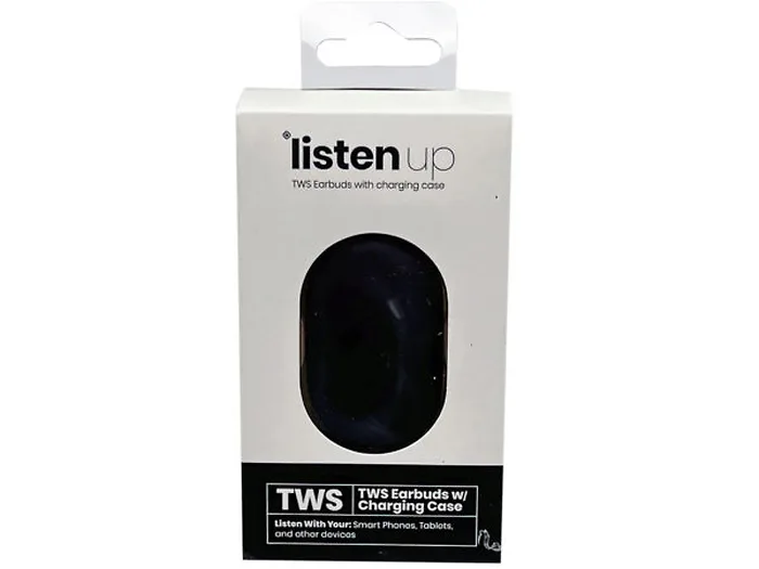 Experience freedom in your listening with the Listen Up Wireless TWS Earbuds. These sleek black earbuds come with a convenient charging case, ensuring that your favorite tunes, podcasts, and videos are always at your fingertips. With Bluetooth connectivity, you can easily pair them with your smartphone, tablet, or laptop.