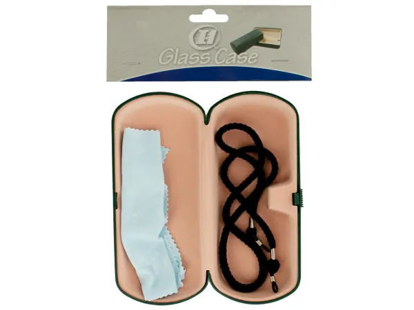 Stylish Green Eyeglass Case with Matching Strap & Cleaning Cloth