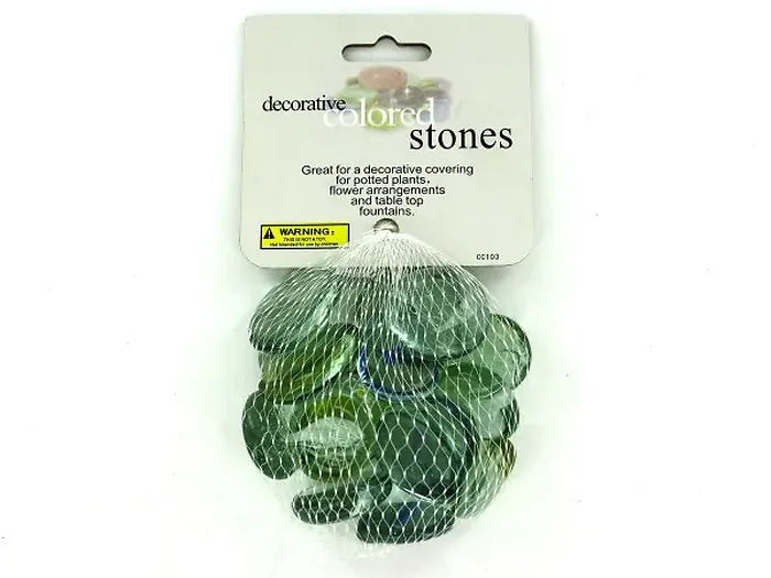 Each stone has a diameter of approximately 1 1/4 inches, making them ideal for a variety of decorative uses. They come conveniently packaged in a net bag with a hang tag for easy display.
