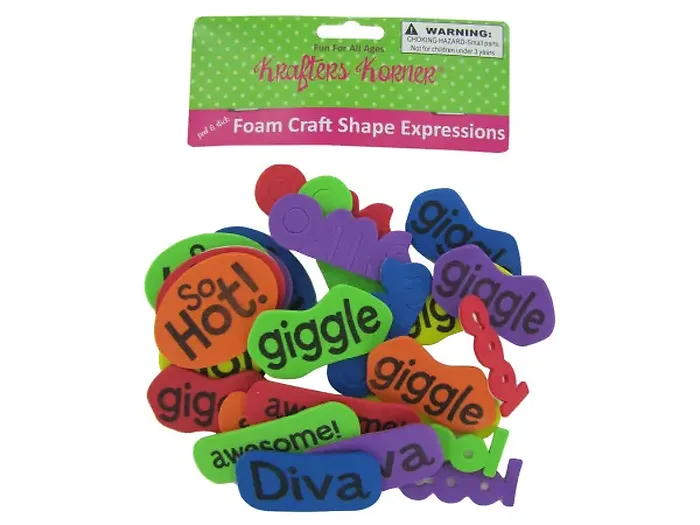 Enhance your crafting projects with these vibrant Foam Word Expressions Stickers! Perfect for decorating folders, notebooks, photo albums, and lockers, these fun stickers include a variety of phrases such as: "So Hot!", "giggle", "awesome!", "Diva", "cool", "OMG", "lol", and "DIY".