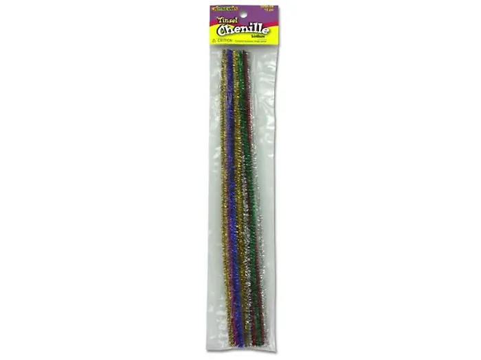 Bring your crafting projects to life with these colorful tinsel chenille craft stems. Perfect for kids and adults alike, these flexible and fun stems can be used to create everything from whimsical animals to beautiful flowers. The shiny tinsel finish adds a touch of sparkle to all your handmade creations.