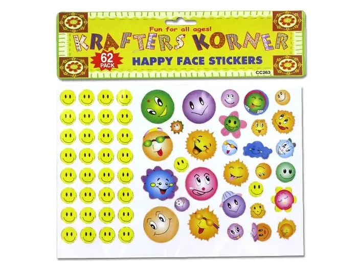 This delightful collection of happy face stickers is perfect for adding joy to any project. The set includes 32 small traditional happy face stickers alongside 30 varied sized stickers, featuring playful designs with tongues sticking out, flower faces, and more. They are ideal for embellishing cards, scrapbooks, and other paper crafting endeavors.