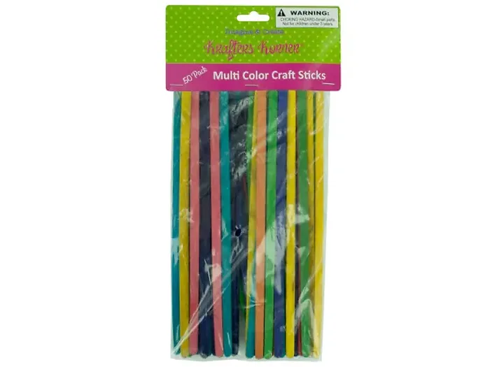 Each pack includes 50 multi-colored sticks, securely packaged in a poly bag with a header card. Each stick measures approximately 7 1/2" long, making them ideal for both small and large projects. Please note, these craft sticks are not recommended for children under 3 years old.
