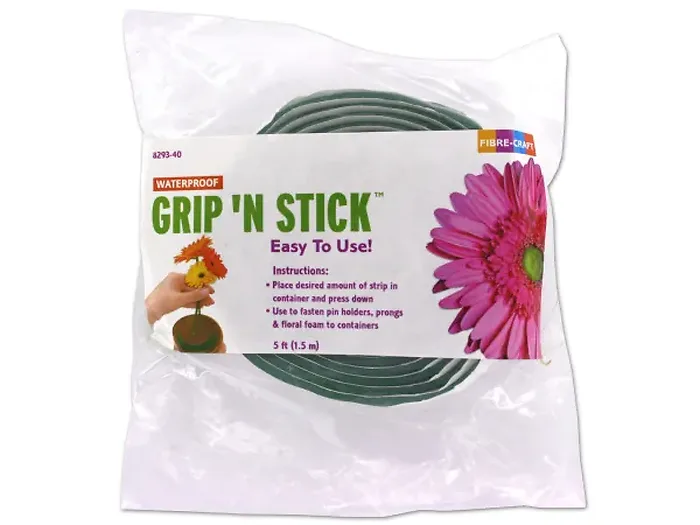 This waterproof floral tape is an essential tool for securing pin holders, prongs, and floral foam within your arrangements. It is designed for easy application: simply place the desired amount in your container, press down, and peel off the backing to reveal the sticky surface. Perfect for creating stable and beautiful floral designs!