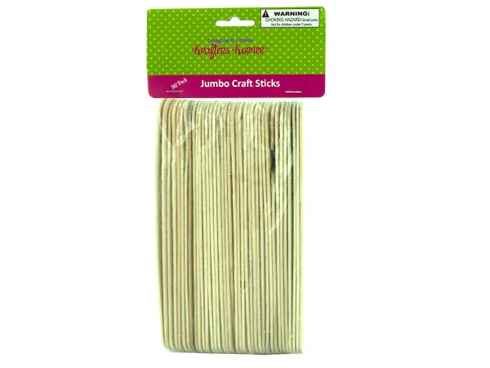 Ideal for any craft projects that come to mind, these Jumbo Wood Craft Sticks can also be used to mix and stir. Each pack comes with 36 pieces. Sticks measure approximately 5 3/4" long. Set is packaged in a poly bag with header card.