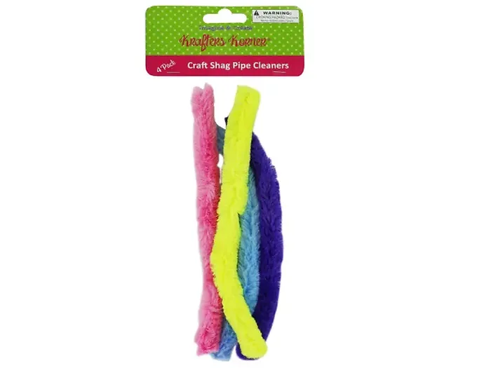 Fuzzy shaggy pipe cleaners are incredibly versatile and perfect for a variety of creative projects! Easily bend, shape, glue, or cut these 12-inch long cleaners to bring your artistic visions to life. Ideal for school projects, crafting, or DIY activities, each set includes four vibrant colors: purple, yellow, pink, and light blue.