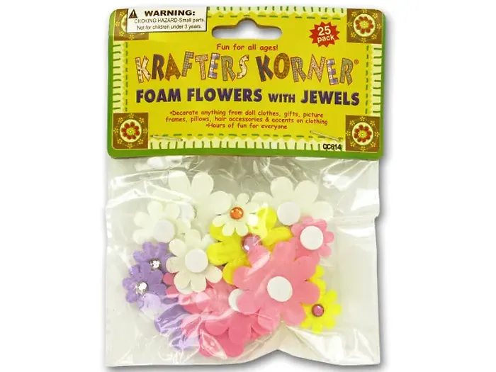 Assorted Decorative Flowers with Rhinestone Centers - 25 Pack