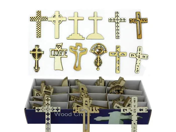 Create beautiful and unique decorative wood crosses with this craft kit. Perfect for Sunday school projects or home crafting, this set includes 12 different styles of cross designs that can be customized using puffy paint, glitter glue, color markers, and more. Each display contains a total of 72 pieces, providing plenty of opportunities for creativity and fun!