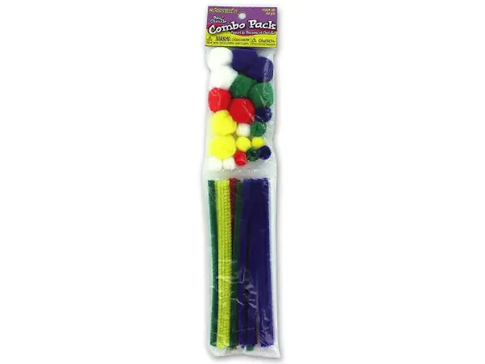 This vibrant set of chenille stems and pom poms is perfect for all your crafting needs. Featuring a delightful mix of colors including blue, red, yellow, green, and white, this combination pack encourages creativity and fun.