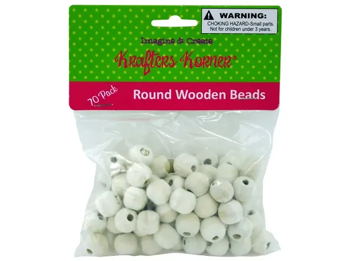 Perfect for jewelry making or other craft projects that come to mind, this 70-piece Round Wooden Beads Set features beads made of natural wood with a smooth finish. The wooden beads can be painted or used as is. Not for children under 3. Each bead measures 1/2" in diameter and has a 1/8" opening. Comes packaged in a poly bag with a header card.