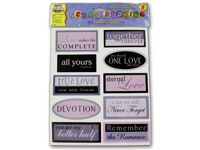 Enhance your scrapbook projects with our versatile set of scrapbook stickers. Available in four delightful themes: girl, boy, baby, and love, these stickers bring charm and personality to your crafting. Each theme comes on a separate sheet containing 10 beautifully designed, large-sized stickers that are pre-cut for your convenience.