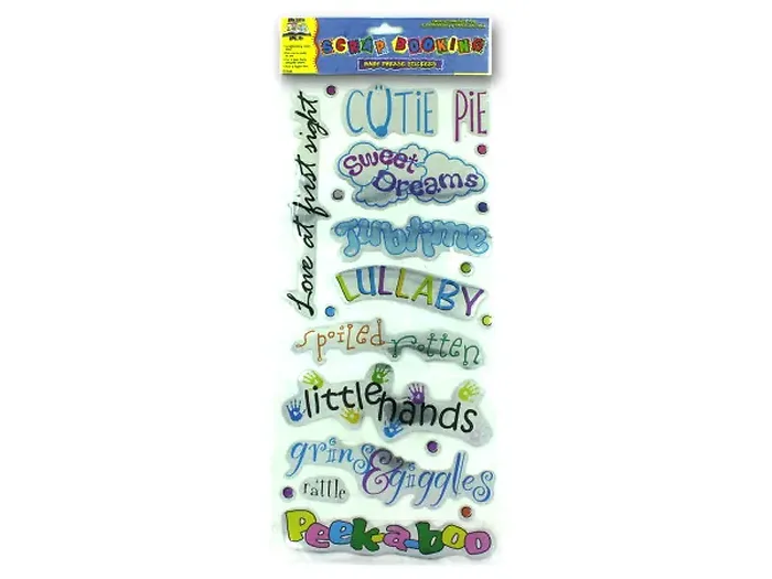 These metallic baby phrase stickers are ideal for capturing and celebrating those precious moments. Available in a variety of vibrant colors and fun shapes, each sheet is filled with pre-cut stickers that make crafting easy and enjoyable.