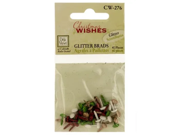 Enhance your scrapbooking and holiday crafts with the Holiday Glitter Brads Set. This 40-piece set features an array of tiny brads, each meticulously coated in vibrant, fine glitter to add a festive touch to your projects. Each brad measures approximately 0.25" x 0.125" and is perfect for embellishing cards, decorations, and more.