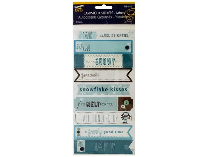 This delightful 8-piece set of Winter Themed Cardstock Stickers is perfect for scrapbooking, decorating, and various craft projects. Each label features charming designs with button accents and winter-themed sayings like "Such a Snowy Day" and "Snowflake Kisses".
