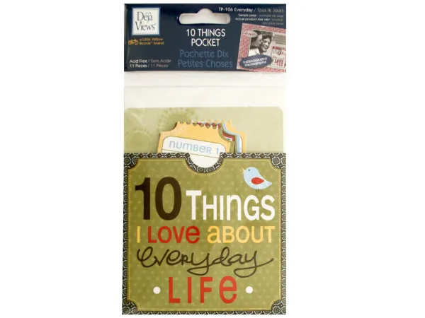 Great for journaling, scrapbooking, decorating and general craft use, this charming 11-piece 10 Things I Love To Do With My Friends Journaling Pocket Set features various designs including decorative tickets with polka dots and more. Acid free.