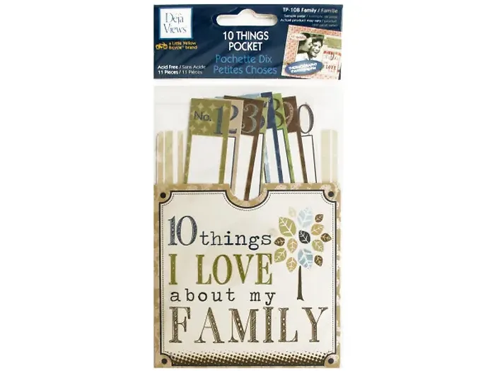 The 10 Things I Love About My Family Journal Kit is perfect for preserving memories and expressing your love. This delightful 11-piece set features a creatively designed pocket adorned with a tree motif that holds decorative numbered tickets. Ideal for family journaling, scrapbooking, or enhancing your craft projects, it's a charming addition to any creative activity.