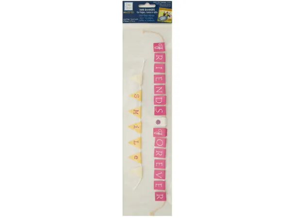 Perfect for scrapbooking, decorating cards and gifts and general craft use, this 3-piece Family Mini Banners with Embossed Accents Set features a mini banner that spells out "We Are Family" in light blue squares, a mini banner that spells out "Happy" on beige flags with text print and a mini banner that spells out "Love" on green flags. All pieces hang with cotton strings. Acid free.