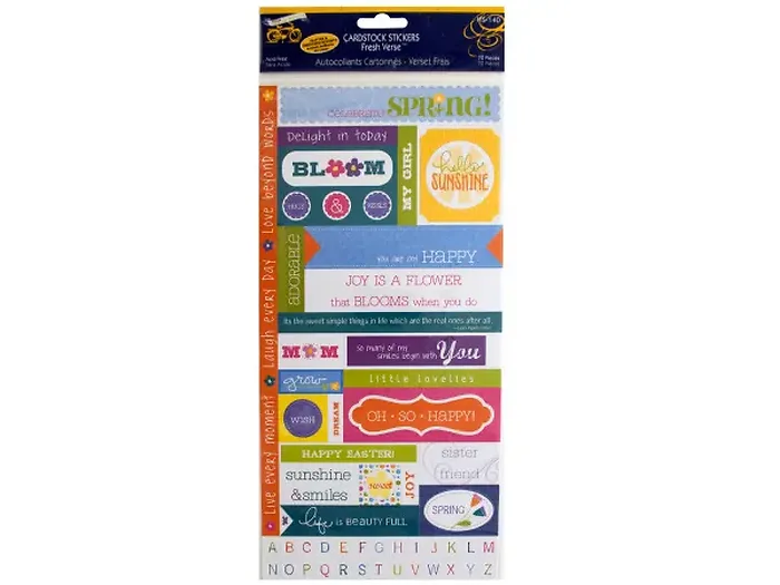 Enhance your crafting projects with the delightful Springtime Glitter Cardstock Sticker Set. This charming collection includes 72 beautifully designed stickers featuring uplifting quotes such as "Delight in today", "Sunshine & Smiles", and "Joy Is A Flower". Perfect for scrapbooking, card making, and festive decorations, these stickers are acid-free to ensure longevity.