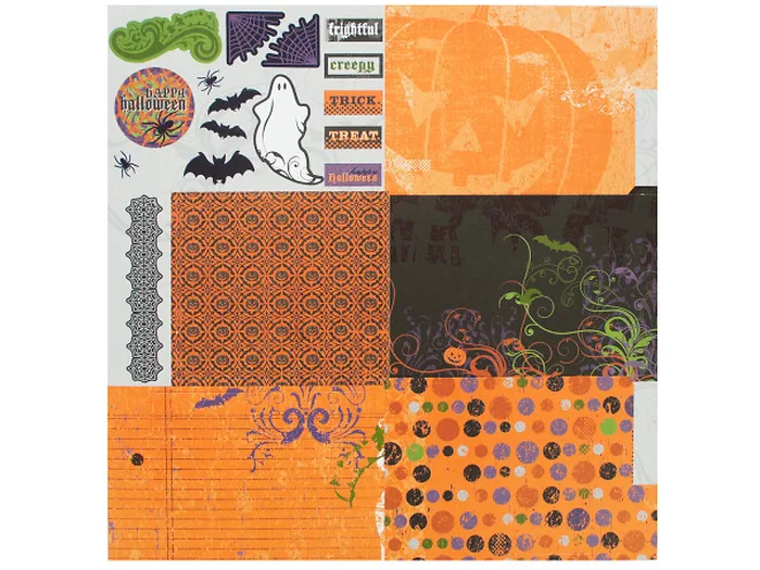 Create your own custom die-cut Halloween album with this fun Frightful Fold-Out Album Kit featuring folding albums with pockets and an assortment of graphics on cutout pieces and borders. A 'journaling' card is provided to use in the pocket. Further embellish your album with photos and more. Acid free. Assembly instructions included. Comes loose.