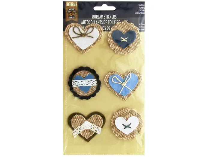 Add a rustic charm to your projects with these Layered Burlap Hearts Stickers. Each set includes six beautifully crafted burlap hearts adorned with lace, felt, and canvas in a variety of styles and colors, making them perfect for scrapbooking, card-making, and home décor.