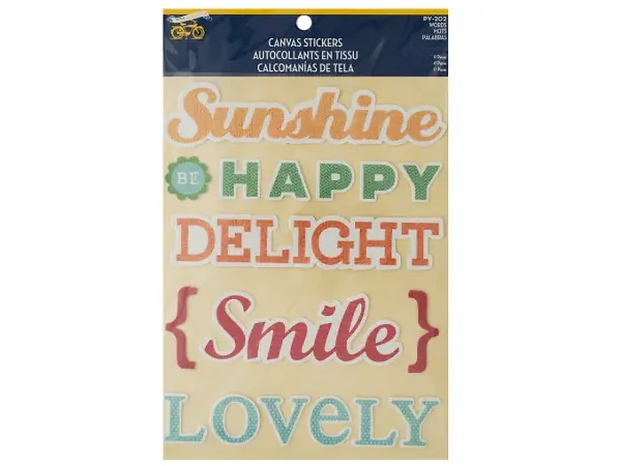 Enhance your crafting projects with the vibrant Be Happy Canvas Words Stickers Set. This delightful collection includes 17 colorful cutout canvas stickers featuring uplifting words like Sunshine, Delight, Lovely, and more. Perfect for scrapbooking, decorating, and all types of craft uses, these stickers are sure to bring joy to your creations!