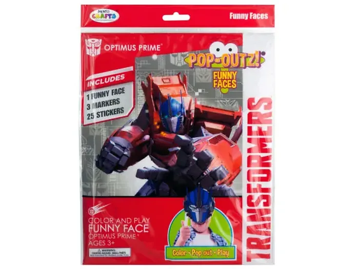 Unleash your creativity with the Transformers Pop-Outz! Create Your Own Fun Face Masks Set. Design your unique Transformers face mask by coloring it, then pop it out to enjoy hours of imaginative play! This exciting set includes everything you need to bring your favorite characters to life.