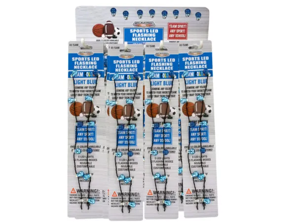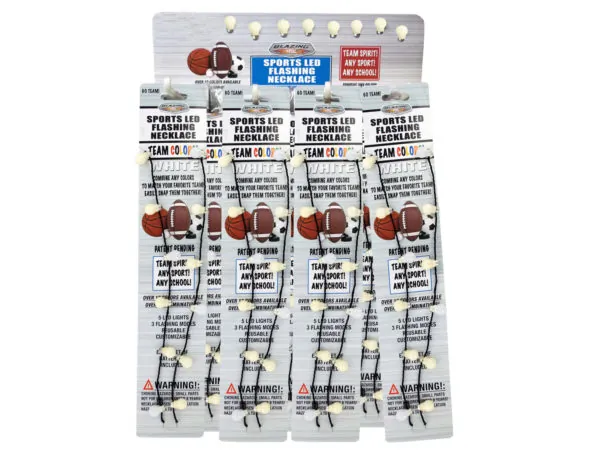 The necklace operates with a simple push button and measures approximately 16.5 inches long. Suitable for ages 8 and up, it includes installed batteries as well as an extra set. Each necklace comes packaged in a hanging panel for easy display. The counter display contains 40 pieces, making it a great choice for events and celebrations.