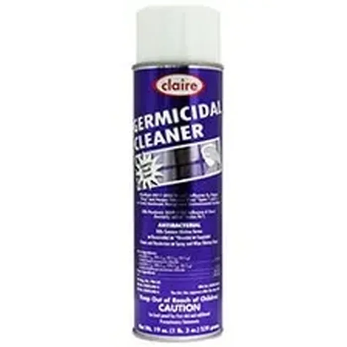 General InformationManufacturer:The Claire Manufacturing Company Manufacturer Part Number:CL876 Manufacturer Website Address:http://www.clairemfg.com Brand Name:Claire Product Name:Germicidal Cleaner Marketing Information:Germicidal Cleaner is an excellent forming cleaner and deodorizer - just spray and walk away. Disinfects HIV-1, Influenza A2-Japan Virus and Herpes Simplex 1 and 2 on hard inanimate nonporous environmental surfaces. Bactericidal - Staphylocidal - Pseudomonicidal - Virucidal. Country Garden scent. 20 oz. can. Packaged Quantity:12 / Pack Product Type:Surface Cleaner