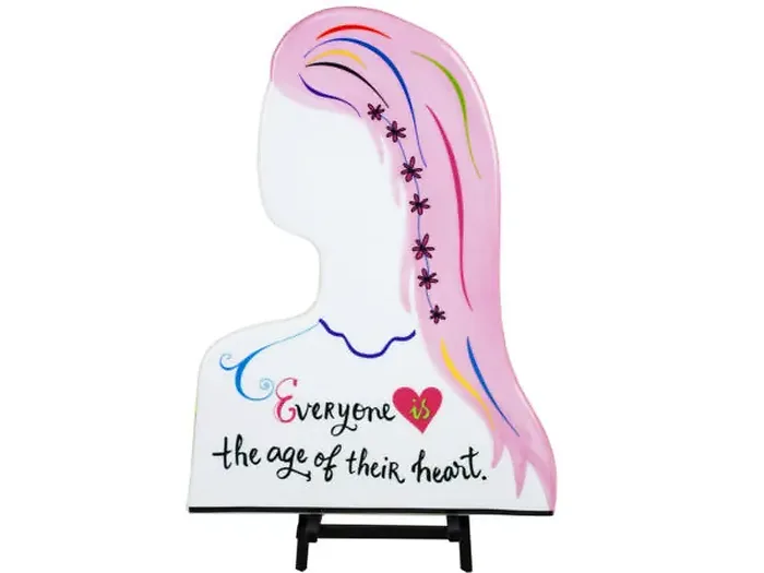 Embrace the spirit of youth with the Age of Their Heart Decorative Ceramic Plaque Set. Perfect for adding a charming touch to your bedroom, living room, or workspace, this dual plaque set features a delightful design of a girl with pink hair adorned with colorful streaks and flowers. Measuring 8.50" x 6" each, these plaques serve as a whimsical reminder that age is merely a number. The plaques are securely packaged in polystyrene foam and come beautifully boxed for gifting or display.