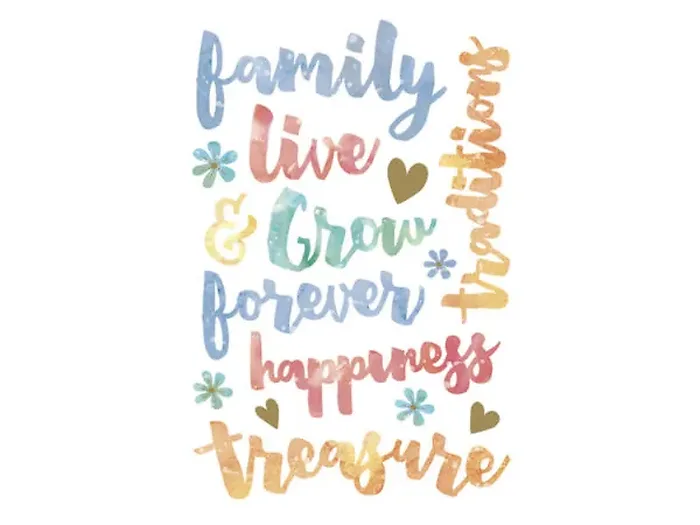 Momenta Family Phrases Watercolor Stickers - 15 Pieces