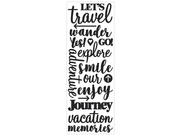 Each pack includes 17 delightful phrases such as "travel", "wander", "explore", "smile", and "journey", making them a fun companion for your family adventures.