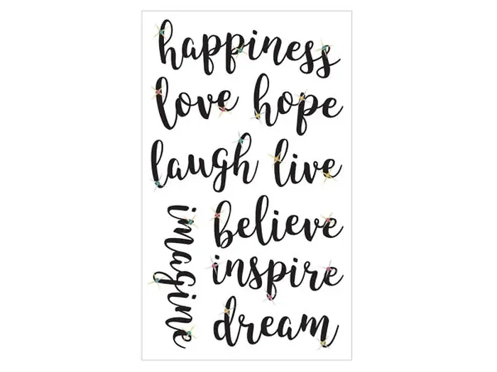 Share your happiness with the Happiness Stickers with Gems from Momenta. Stick them throughout your house as positive affirmations or perfect little reasons to smile. There are 16 adorable phrase stickers included in the package with the words "happiness," "love," "hope," "laugh" and more, written in a beautiful black bold calligraphy print and bedazzled with sparkly gems!