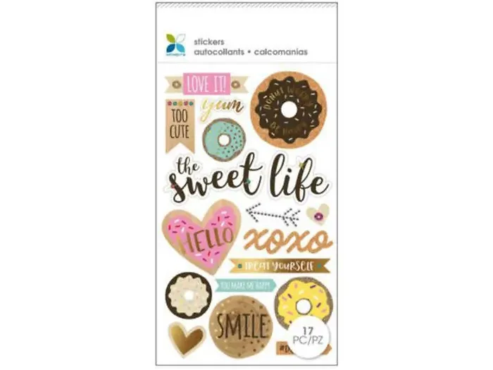 With charming images like a chocolate donut, a strawberry heart-shaped donut, and inspiring phrases such as "sweet life" in elegant calligraphy, these stickers bring a delightful touch to your crafting endeavors!